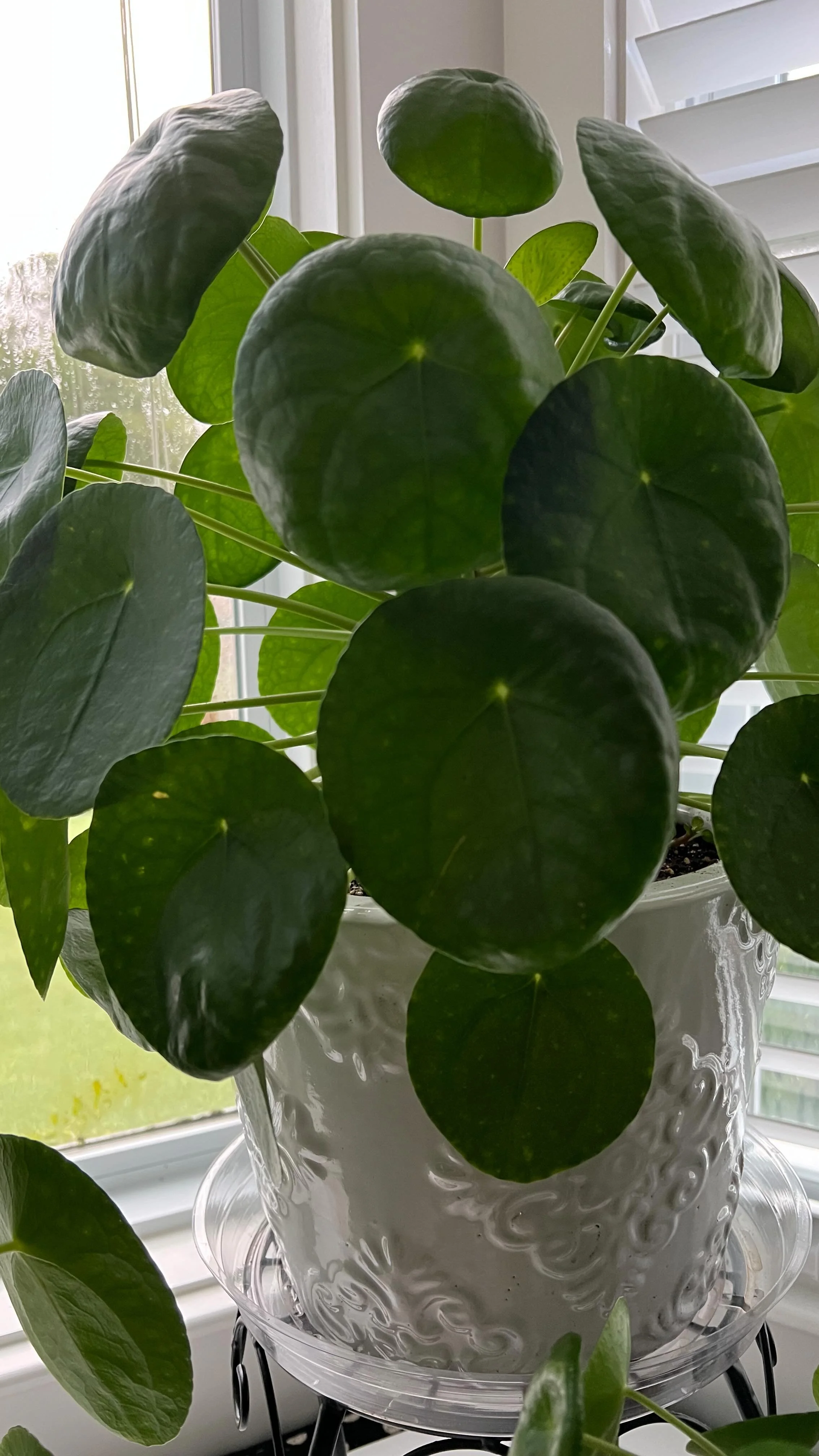 With big round, glossy leaves on thin stems, the Pilea Peperomioides plant makes a striking conversion piece.